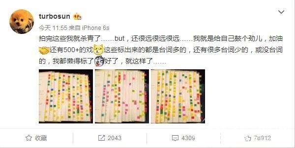 自己在网上晒了自己的剧本,上面的标识是花花绿绿密密麻麻的,看的人都不由得佩服,孙俪这拍戏花了多少时间在研读剧本?想必正戏出来之后一定不会让观众失望的