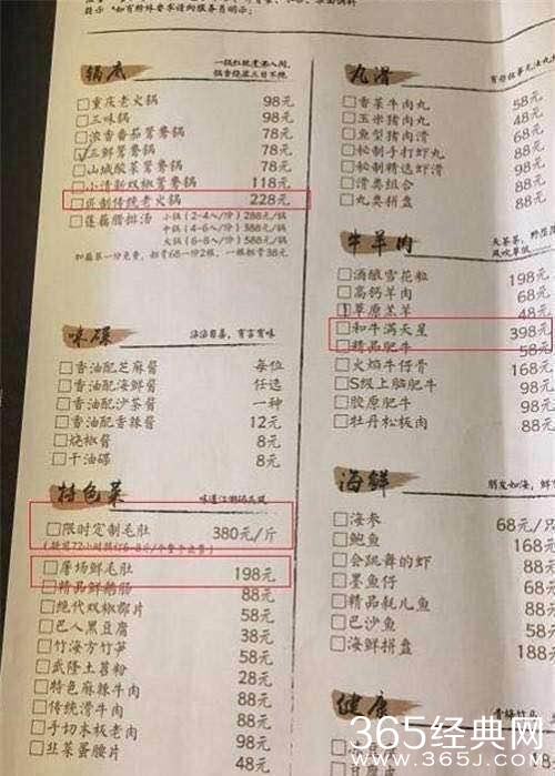 “限时定制毛肚”要380元一斤,一份和牛也得398,传统老火锅的锅底要228元,这要是妹妹去吃估计就得被押在后厨洗盘子了……很多网友都说如果是去吃重庆火锅,人均最贵也不到一百,可是要是在黄磊的店里消费人均都得300元……