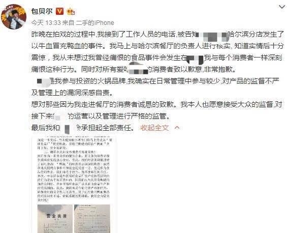 之前包贝尔开的火锅店也被爆出以牛血冒充鸭血的事件,这样涉及到欺骗消费者的事件给包贝尔的形象也造成了很大的影响,尽管这只是一家分店出现的问题,但是作为老板,包贝尔肯定得为此担起责任,不知道现在他的火锅店整顿的怎么样了?