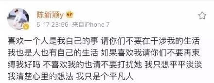 不过这突然爆出的恋情有点猝不及防,而且陈新颖还发微博让大家不要干涉他的生活,不要去打扰焦可然,华丽丽的保护小女友啊