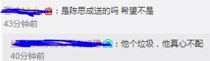 有意思的是,网友的态度还是没有改变:“是陈思成送的吗?希望不是!”;“他个垃圾,他真心不配”