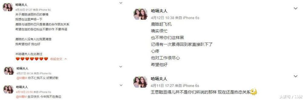 详细翻阅了这位“哈噶夫人”的微博,内容都与鹿晗相关。其中,不乏对鹿晗表达爱意,也有小情绪闹矛盾,文字居多基本没配图,并没有太多实锤证明她和鹿晗为情侣关系。