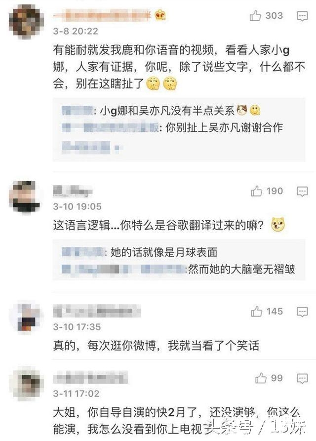 并且,编得毫无逻辑,前后不关联,网友、粉丝虽然很气愤,但都只把她当个笑话。还有网友喊话“哈噶夫人”,建议:“要是想学小g娜,首先得有证据,不要光玩文字游戏。”吴亦凡也跟着躺枪。
