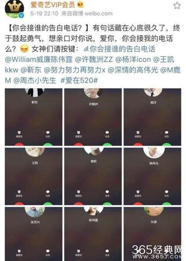 昨天晚上,爱奇艺VIP会员发了一条关于520的微博,,,@了好几位明星来着