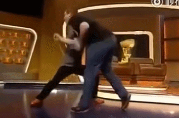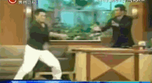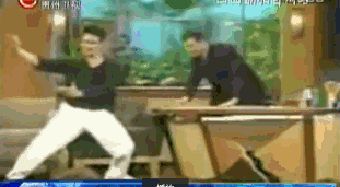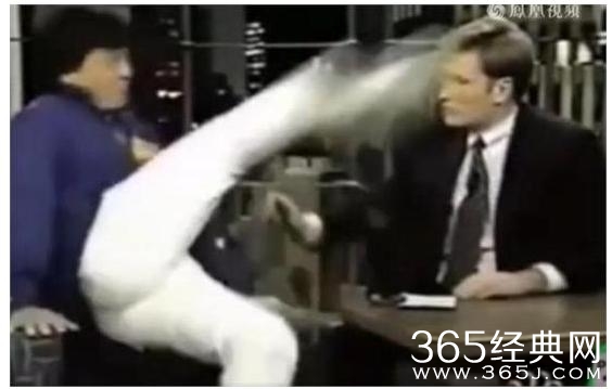 成龙毫不客气,双手一拍凳子迅速跳起,迅雷不及掩耳之势,一脚直踢主持人额头,对方瞬间就懵了,疼得直摸自己的额头。