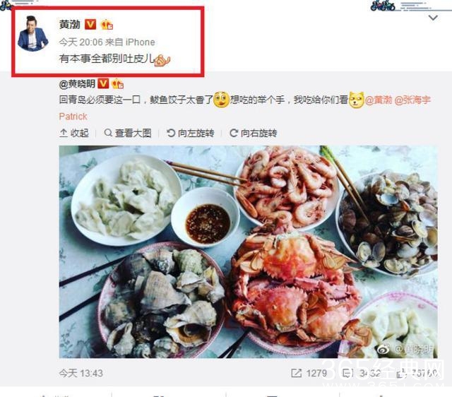 作为青岛人的黄晓明,回到自个的家园,当然要吃海鲜啦!