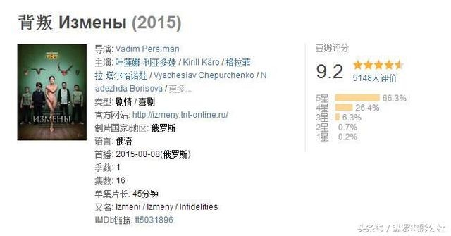 战斗民族拍起婚外情题材也能这么高能,把俗套的出轨讲的精彩万分!这部剧更是荣获“2015年俄罗斯最佳电视剧奖及最佳剧本奖”