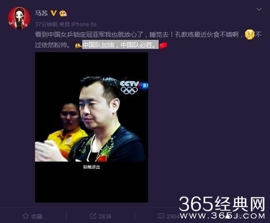 而最近蔡振华的儿子参加跨界歌王节目,请国乒队给他帮忙站台,张继科点评了一句,马苏马上转发,特别是最近孔令辉因为亚锦赛丢掉女单金牌,急需要在世乒赛上重新崛起,而马苏对于世乒赛的关注明显也是冲着孔令辉。