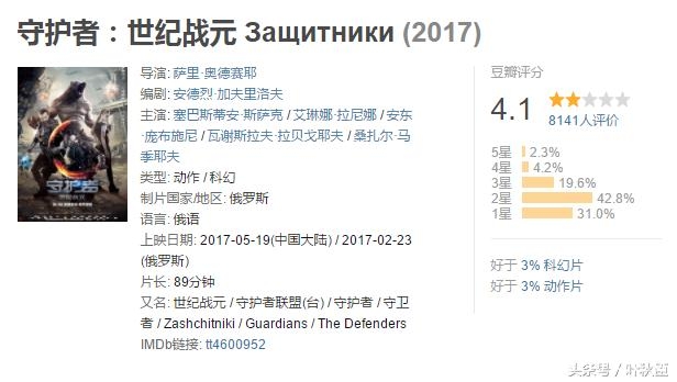 作为俄罗斯引进的电影,说实话看起来还挺新鲜。但是,剧情很糟糕,节奏一点不连贯,造型多于实质,Bug也很多。所以,这部电影在豆瓣的评分仅有4.1分,也是可以理解的。虽然特效还是被很多人诟病,但显然比某些抠图制作的烂渣戏份要用心得多。