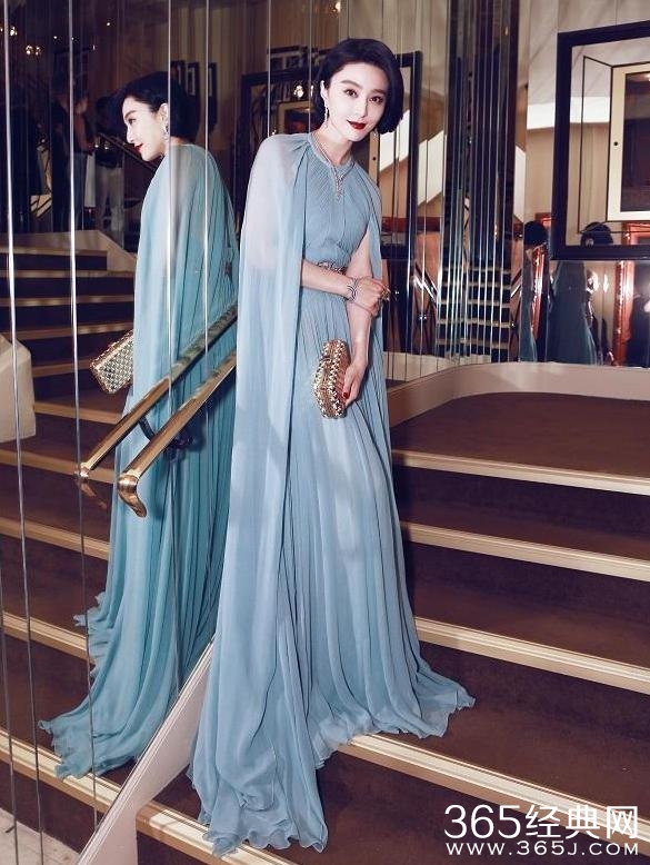 范冰冰身穿一袭湖蓝色的披肩长裙,在一众评审当中脱颖而出,成为了一道亮丽的风景线。
