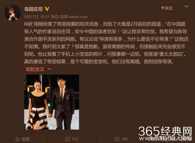 前些日子,跟陈思成有过合作的日本作家岛田庄司也发文,证实了陈思成佟丽娅的婚姻现状: