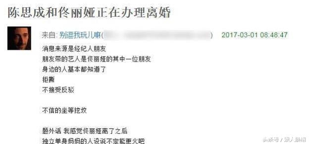 之前,有人爆料说,陈思成佟丽娅正在办理离婚手续