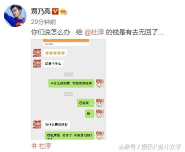 昨天,贾乃亮又给杜淳微信转账了,结果手滑给转多了,还要求杜淳退钱