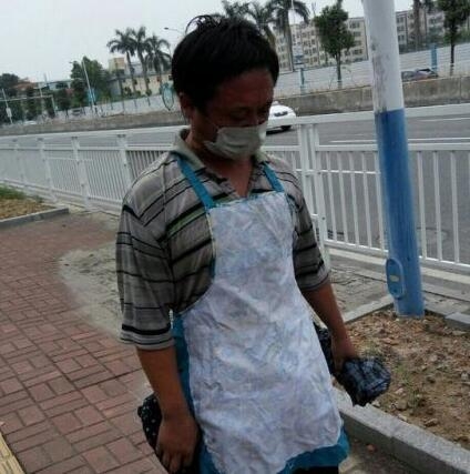 两年前有人发现在街头流浪靠着垃圾为食的李传。当时的李传不愿和任何人交流,还用捡到的胶条袋子和口罩之类的物品将自己的脸部和头部遮住。