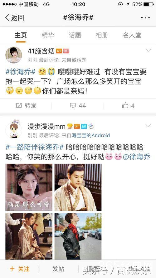 除了马可之外徐海乔也算是收获蛮大的了,虽然他也是早早就在新版《红楼梦》中出道了,不过还是靠着《花千骨》收获了一堆综艺,即便恋情被曝光了,粉丝的画风居然如此清奇。
