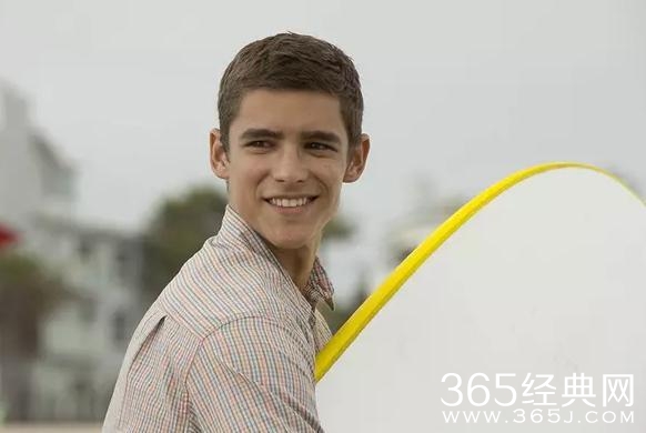 然后他在电影《踏浪》中,演一个热爱冲浪到从纽约大学退学的少年