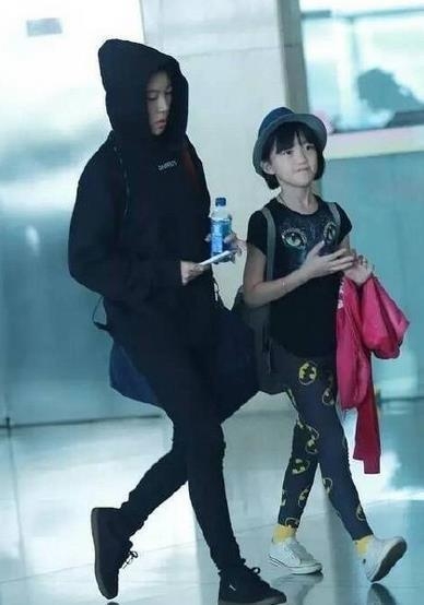 看得出嫣儿很有个性,10岁的嫣儿已经有着大长腿了,背书包的样子很像王菲。
