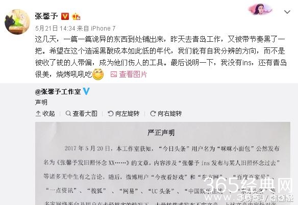 近日张馨予总算学乖了点,从上次小号事件吸取了一点经验教训,于是在5月20日这个特殊的日子里,先是与闺蜜聚了个餐,拍了合照发在微博先备个案,撇清自己的关系。