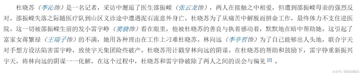这里写的是邵振嵘在山区意外死亡之后,杜晓苏才认识了雷宇峥,而且雷宇峥是被杜晓苏打动并且默默帮助她的。但是从刚才的台词来看,雷宇峥一开始对待杜晓苏的态度并不是很好啊。(疑惑脸)