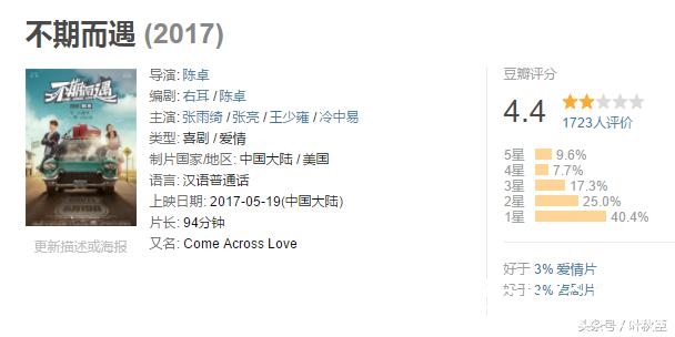 这一次,张亮与张雨绮在《不期而遇》里也上演了一丢丢激情戏码,点到即止。光看剧照,似乎有一种只换了头的感觉。然则两人身材太正,毕竟男是高挑模特女是性感尤物,自然搭配在一起会产生荷尔蒙的化学反应。这次的评分是4.4,较上一部略有进步,相信下一部电影破5指日可待。