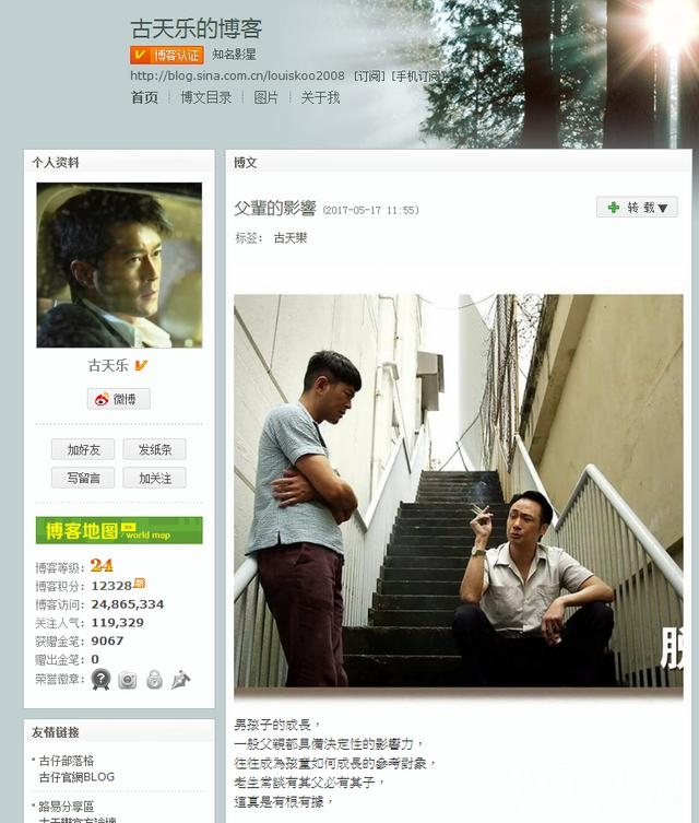 虽然古天乐在公众面前一直话很少,但在有个地方他却话很多,就是在他的博客。