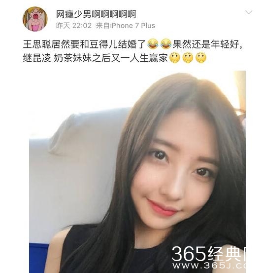 近日,某微博大号爆料称:王思聪要和他的网红女友豆得儿结婚啦!果然还是年轻好,继奶茶妹妹、昆凌之后又一人生赢家!