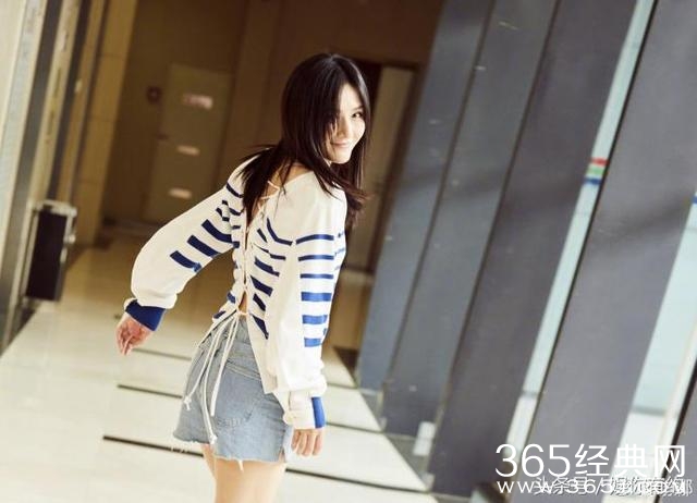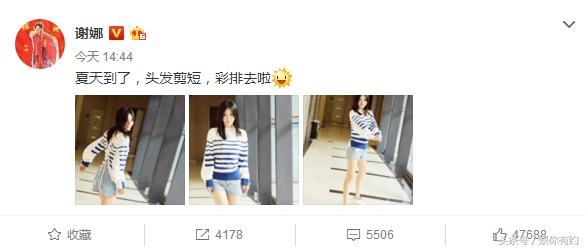 照片中谢娜头发变成了中长发,一身蓝白条纹的上衣,下面穿了一个牛仔短裤,一双小白鞋,干净利索。