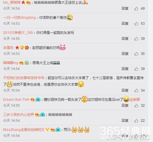 粉丝们看到他们在撞衫后又“撞头”也哈哈的笑起来了,把他俩称为“撞衫姐妹”,“甚至有网友说银角大王上线”。