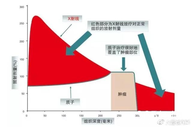质子治疗于1988年通过FDA认证。它是一种根治性新型治疗手段,在对正常组织几乎不造成影响的前提下,直达病灶,对癌组织“定向爆破”,致癌细胞完全死亡。它利用氢质子通过同步加速器成为穿透力极强的粒子束,产生高能量“布拉格峰”,杀灭治疗靶区肿瘤细胞。