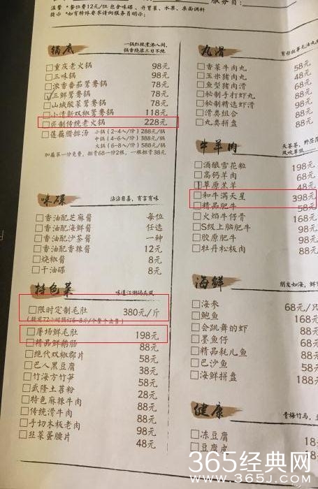 光是锅底就要228元,而一盘牛肉更是要价398元!其他菜类也比正常价高出了好多,这让好多网友们大跌眼镜,就算是明星大腕,难道物价局就不管了吗?
