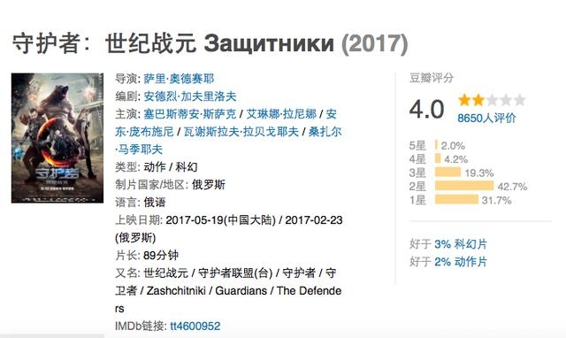 俄罗斯出品的超级英雄大片《守护者:世纪战元》上周在国内上映了,影片形似俄罗斯版的《复仇者联盟》,上映7天收获票房2000万,并拿到豆瓣评分4.0的低分。小编以为,我国之所以会引入本片,旨在告诉中国的电影观众们,中国电影在“大片”上的表现绝不是差到没朋友。