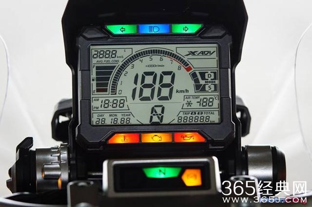 Rally高置式仪表板,有一个大型TFT屏幕,显示了丰富的行车信息,包括:转速、时速、档位、DCT模式、油量、即时油耗、平均油耗、里程等等另外在荧幕的上下方以及手把上有多个灯号显示,像是引擎检测指示灯、手刹车警示灯,让骑士充分掌握车辆的状况。