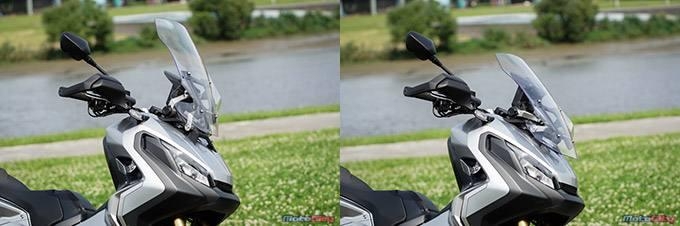 X-ADV配备了五段高低可调风挡,可降低巡航时的风压在雨天行驶时,也可以遮挡风雨提升骑乘的舒适性另外也配备手把护弓,可保护手部,避免倒车的伤害以及拉杆断裂。