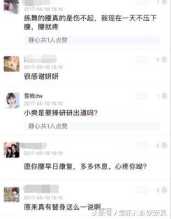 小爽还在粉丝群里夸赞她:“妍妍(替身)比我本尊美,因为我有腰伤,所以她经常帮我站位,也因为她是个不爱争的女孩,所以走近了。”