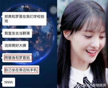 前段时间,有网友爆料称,郑爽拍戏耍大牌,自己坐着玩手机,让替身与罗晋对戏,并晒出郑爽的照片,一时间郑爽耍大牌的通告满天飞。