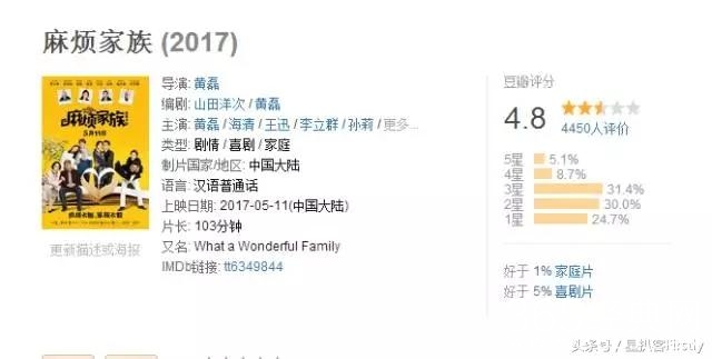 最近黄磊拍了一部电影叫《麻烦家族》,豆瓣评分4.8,被骂惨了