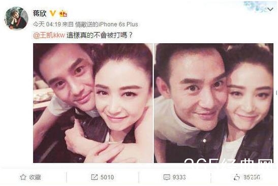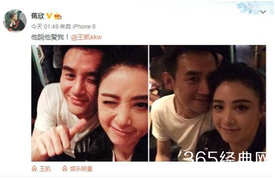 当时也是因为一起都有参演了两部《欢乐颂》,但是剧里王凯和蒋欣按理来说是没什么交集啊,甚至都没有面对面的对戏。而蒋欣在微博居然放大招,晒出和王凯的亲密合影,还问网友们这样子会不会被打,更是@了王凯,写下一句特别暧昧的留言:他说他爱我。