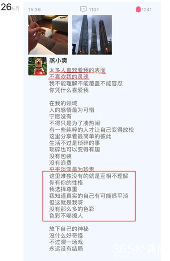 郑爽再次向喜欢她和不喜欢她的人发声,一句“太多人喜欢着我的表面,不喜欢我的灵魂”17个字道出其作为明星的内心世界。在粉丝和网友眼中,他们所喜欢的郑爽是一个可爱清纯漂亮的女孩,喜欢《一起来看流星雨》中的楚雨荨,喜欢《微微一笑很倾城》中贝微微,也喜欢《夏至末至》中的立夏,更喜欢郑爽在银幕中所有形象,然而这一切都不是郑爽最真实的生活世界。