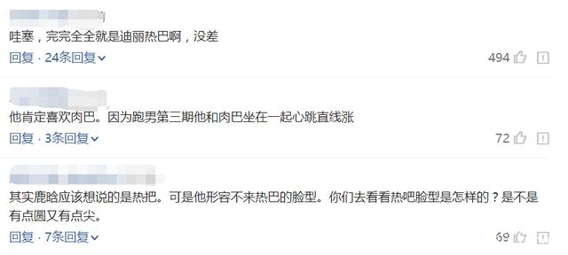 其实鹿晗应该想说的是热巴,可是他形容不来热巴的脸型。你们看看热巴的脸型是怎样的?是不是有点圆又有点尖。