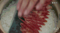 将腊肉细细切好,整齐地码在雪白的米饭上,再淋上茄汁……