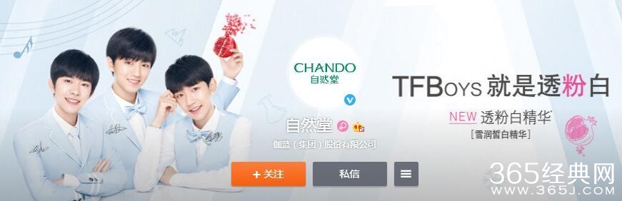 如今自然堂的微博头条上,也是只放置了TFBOYS的三个小小鲜肉的广告海报。