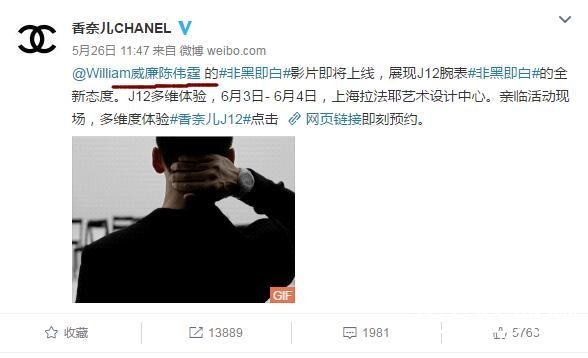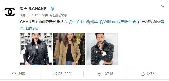昨天,一直深受女性们追捧的奢侈品牌香奈儿,在官方微博上发布了2017腕表发布会的预热公告。先是@了刘雯,紧接着在19分钟后,再一次发布公告,并@了陈伟霆。
