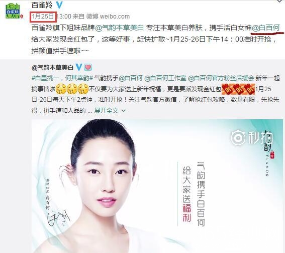 同样换下白百何的还有百雀羚,就在今年1月,百雀羚还大手笔打造了白百何的广告,当时大大小小的公车站、地铁站牌都有这款广告的身影。