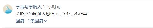 仔细一看,出现灵异事件了,关晓彤这脚趾好像不太对劲吧,还不止多了一个,是多了两个......7个脚趾头,这太吓人了!密集恐惧症或者害怕的直接略过下面这张图吧