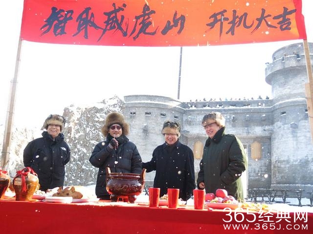 《智取威虎山》开机仪式上,漫天雪花,天气很寒冷,黄宏先生也来到了片场。