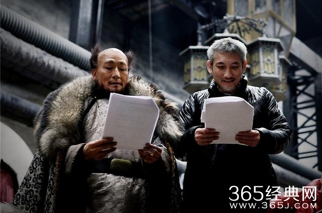 徐克和梁家辉在对剧本,看起来相谈甚欢。