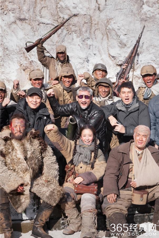 实地场景戏拍完后,整个剧组合影庆祝,预祝票房大卖。