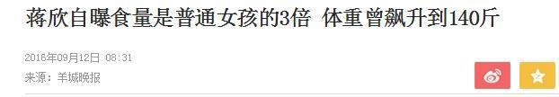 可以打败宋佳的,就是蒋欣了。她曾自曝最高体重,140斤。