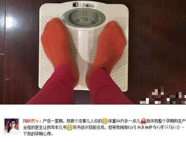 陶昕然也是88斤。毕竟,她生完孩子一周也才94斤……