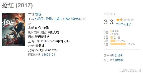 豆瓣的3.3分估计是冲着张涵予和情怀给的吧,好于0%动作片和0%犯罪片,第一次见到!